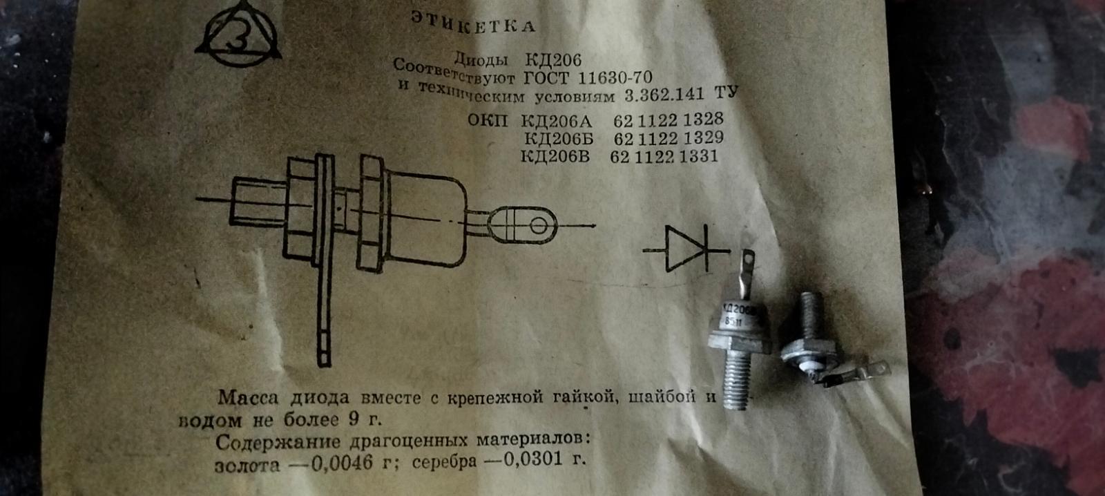 труба007 Опубликовано 49 минут назад ID пользователя: 4 265 Группа: Пользователи Количество тем: 2 Тем в день: 0.00 Количество контента: 1 912 Контент в день: 0.65 Репутация: 7 619 Дней с нами: 2 960 Days On/Off: Offline Последнее посещение: 47 минут назад Age: 8 Устройство: Android Город: Москва #33518 Опубликовано 49 минут назад (изменено) 26 минут назад, ivan сказал: Добрый день! Подскажите, пожалуйста, где в этом диоде может находиться обозначенный в паспорте материал? Ну обычно)) где анод с катодом соеденяется пятачёк крохотный Но год на диоде какой то не хороший))) а этикетка судя по всему старая с правельных 70х годов Имхо сам я такие не проверял так догадки только а и из практики по 242 диодам года имеют значение)) Изменено 48 минут назад пользователем труба007 1