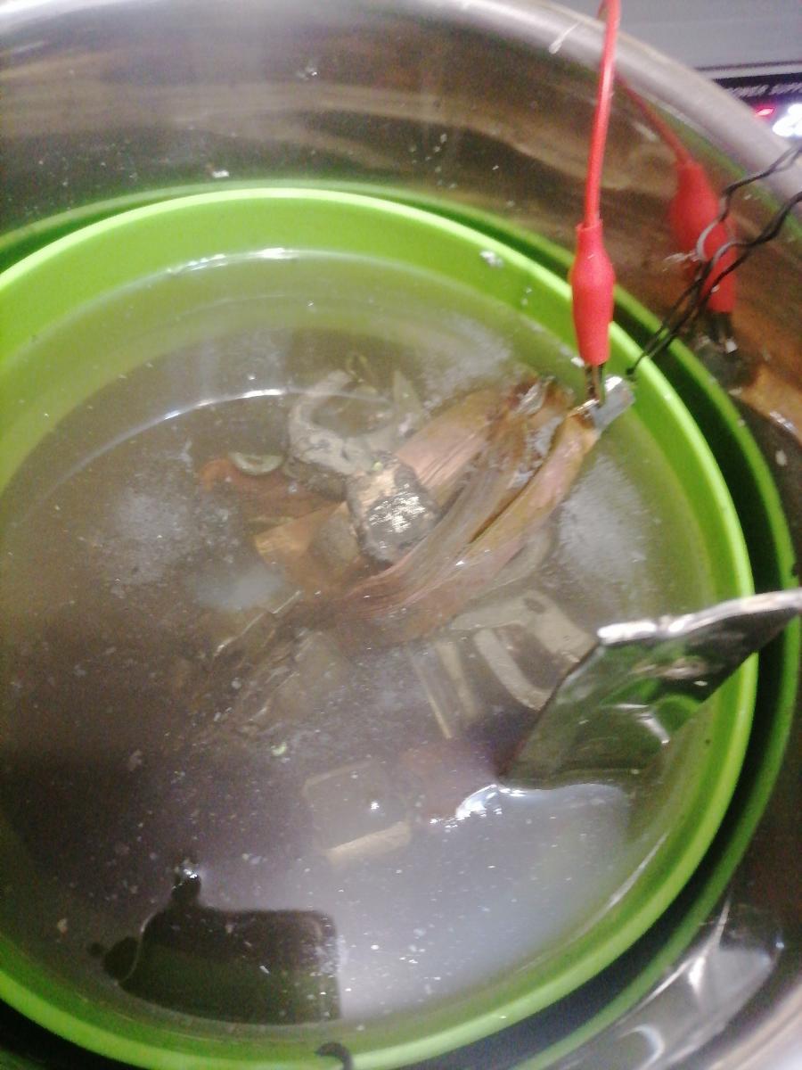 Ach Опубликовано 18 ноября ID пользователя: 4 107 Группа: Пользователи Количество тем: 3 Тем в день: 0.00 Количество контента: 286 Контент в день: 0.10 Репутация: 406 Дней с нами: 2 993 Days On/Off: Online Последнее посещение: 8 минут назад Age: 37 Устройство: Windows Город: Ачинск #105 Опубликовано 18 ноября Первый раз электролиз поставил. Для пробы закинул маленько с автомата СССровского карболитового 500А маркировку не помню, контакты механически снял остатки решил смыть. Вода грязная потому что по одной фазе было К.З. серебро в копоть превратилось решил не отмывать от грязи. Вопрос такой в интернете в видюшках одни говорят ориентироваться на напряжение(до 2 вольт), в других по току(до 0.7 ампер). Кто как делает настройки на БП? И мне кажется у меня кастрюля не очень, нержа по ходу китайская(с мультиварки) магнититься только неодимовым магнитом, но очень слабо. 1