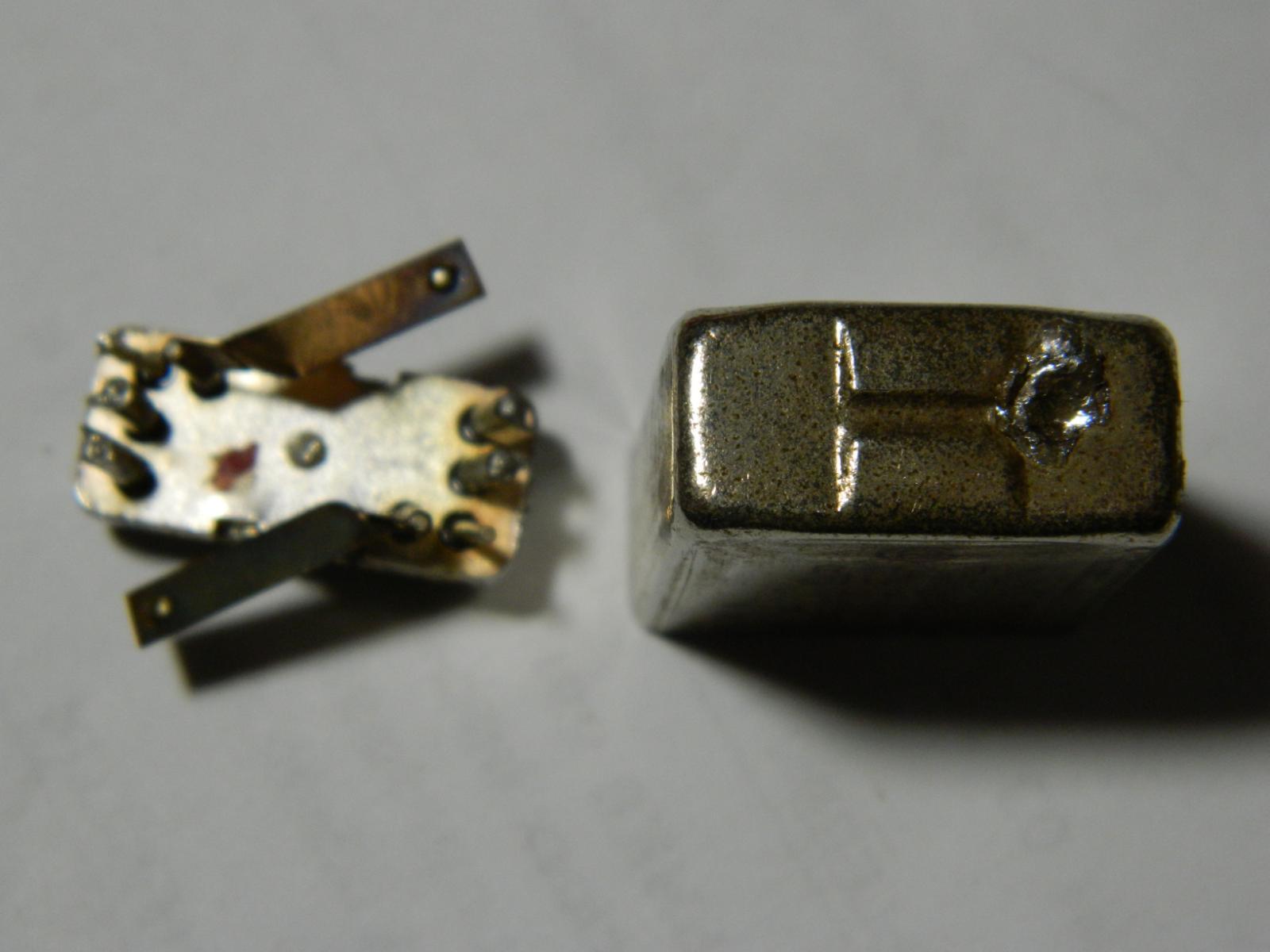 Admin-Radiodetali-Sfera. Опубликовано Понедельник в 08:25 ID пользователя: 1 Группа: Администраторы Количество тем: 197 Тем в день: 0.04 Количество контента: 13 408 Контент в день: 2.99 Репутация: 15 320 Дней с нами: 4 488 Days On/Off: Online Последнее посещение: 10 минут назад Age: 47 Устройство: Windows Город: г.Феодосия. #466 Опубликовано Понедельник в 08:25 13 часов назад, КАС сказал: Доброго вечера! Пришли еще реле-германцы, разобрал неприемные, попадаются и палладием. Ответ на разницу цен в прайсе ни кто не дал, любопытство оказалось сильнее 50-ти рублей, разобрал и три приемных. С Bv-11 все контакты палладий С Bv-11 AgPd подвижный палладий, неподвижный - позолоченный палладий. Внутренняя сторона основания у серебряных и Пд контактов - посеребрение. В реле с позолоченными контактами - позолочено и основание. В неприемных попадаются и контакты Пд, снятые и очищенные от припоя они принимаются? и по какой цене? А это реле желательно прислать на анализ если есть их несколько штук положите все . Тоже Ваше фото . 1