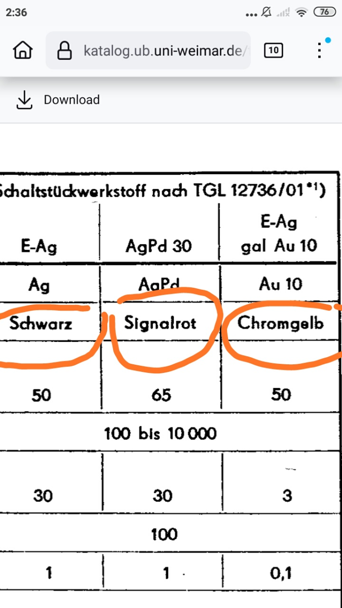 Admin-Radiodetali-Sfera. Опубликовано Понедельник в 23:04 ID пользователя: 1 Группа: Администраторы Количество тем: 197 Тем в день: 0.04 Количество контента: 13 408 Контент в день: 2.99 Репутация: 15 320 Дней с нами: 4 488 Days On/Off: Online Последнее посещение: 10 минут назад Age: 47 Устройство: Windows Город: г.Феодосия. #470 Опубликовано Понедельник в 23:04 36 минут назад, фёдор сказал: В зависимости от года немцы указывали материал контактов цветом шрифта, жёлтый- позолота серебра, красный пд30%, чёрный- серебро, в релюхах в прозрачных корпусах со стороны винта которым стянуты контактодержатели ставили метку соответствующего цвета.В какой то период непосредственно указывали материал контактов на корпусе. Совершенно не вижу не какой связи в цвете шрифта указывающей на материал контактов , эти реле замороченные как и многие другие импорт реле. По поводу пробы, и 24 и 26% Pd в них бывает.