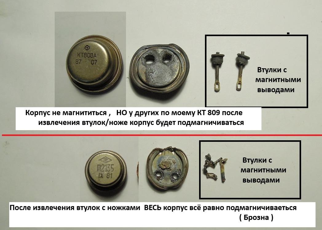 Admin-Radiodetali-Sfera. Опубликовано 22 часа назад ID пользователя: 1 Группа: Администраторы Количество тем: 204 Тем в день: 0.04 Количество контента: 13 944 Контент в день: 3.04 Репутация: 14 715 Дней с нами: 4 588 Days On/Off: Offline Последнее посещение: 18 минут назад Age: 47 Устройство: Windows Город: г.Феодосия. #244 Опубликовано 22 часа назад Покажу/объясню свои выводы по очистке оснований транзисторов КТ 802-908 и подобных и П-эшек , от засора магнитных втулок/выводов . Как известно основания от этих транзисторов не приёмные вовсе на приёмках-цвета или приёмные с барыжной супер-скидкой или где то уже и приёмные . Какие я встретил у нас на форуме варианты очистки : 1) Выколачивание втулок. 2) Высверливание втулок . 3) Выпаивание втулок , метод показал Фёдор . Меня заинтересовал метод выпаивания , епать/колотить/сверлить с этими методами всё понятно . Фёдор грел над газовой плиткой основание и вывод вместе с втулкой вылазил в сторону кристалла . Греть над газовой плиткой это гиблое-долгое и мутное дело . Я грел резаком пропан/кислород несколько штук КТ-эшек и так-же П-эшек . Нагрев очень быстро до красного и у некоторых транзов вся эта магнитная поебе..ь сама выскакивала даже не трогая её инструментами , некоторым нужно было помочь перехватив жопку бокорезами и дёрнув за вывод . Если отпаивать резком , нужно это делать вдвоём , один греет , помощник оперирует двумя инструментами бокорезы/плоскогубцы и что-то острое . Да отпаивать можно , пойдёт , но не у всех есть резак , и всё-же хотелось что то менее затратное по инструменту и расходам и помощника . Я попробовал другой метод , вторым своим волшебным инструментом после резака ( резак первый волшебник ) , инструмент под названием ( болторез ) . И выяснилось что оптимально коцать болторезом . Болторез нужен под цифрой 1 или 2. Не все жопки чистая медь , могут попадаться легко-магнитные и это бронза . Очистив жопки от втулки/вывода они всё равно будут чуть подмагничиваться . 4 2